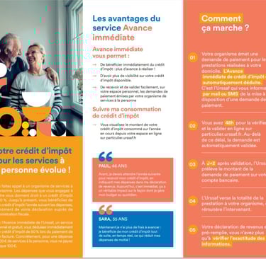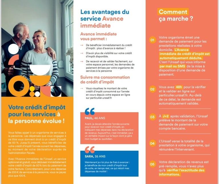 L’Urssaf et la Direction générale des Finances publiques ont mis en place le service Avance immédiate qui vous permet de déduire immédiatement votre crédit d’impôt du montant que La p'tite marmite vous facture pour les prestations réalisées à votre domicile. Il s’agit d’un service optionnel, gratuit et dématérialisé.